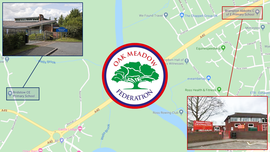 Bridstow Primary School and Brampton Abbotts Primary School are situated just over one mile apart and on opposite sides of the A40. Both are Voluntary Aided Church of England Schools and in 2016 they entered into a Soft Federation and a commitment to work together. Four years later this arrangement was formalised in the establishment of the Oak Meadow Federation.