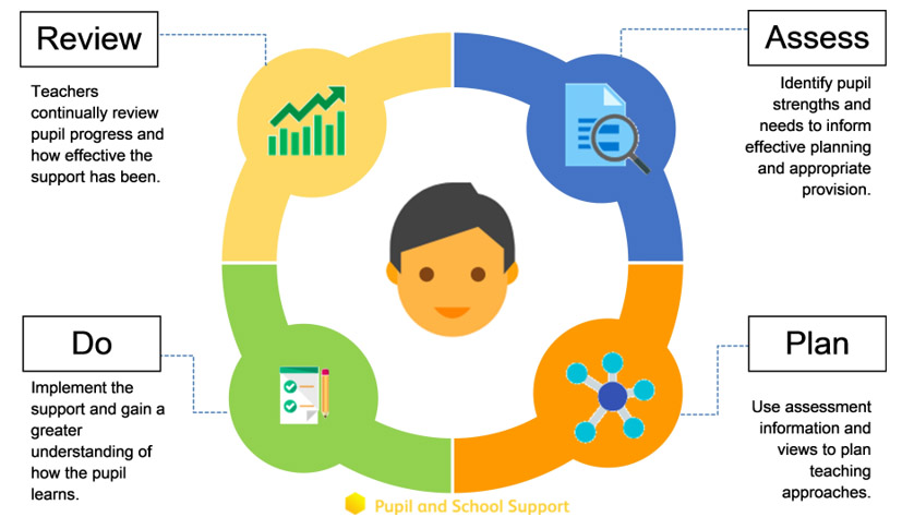 We also follow the SEND Assess, Plan, Do, Review Cycle as recommended in the SEND Code of Practice 2014, to inform the support we offer children with additional needs.
